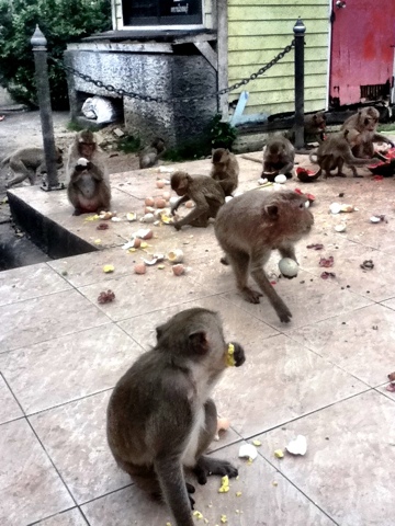 Pulled into Bangkok with three days to go, so I jumped on another train to Lop Buri Thailand to see some ruins inhabited by monkeys..